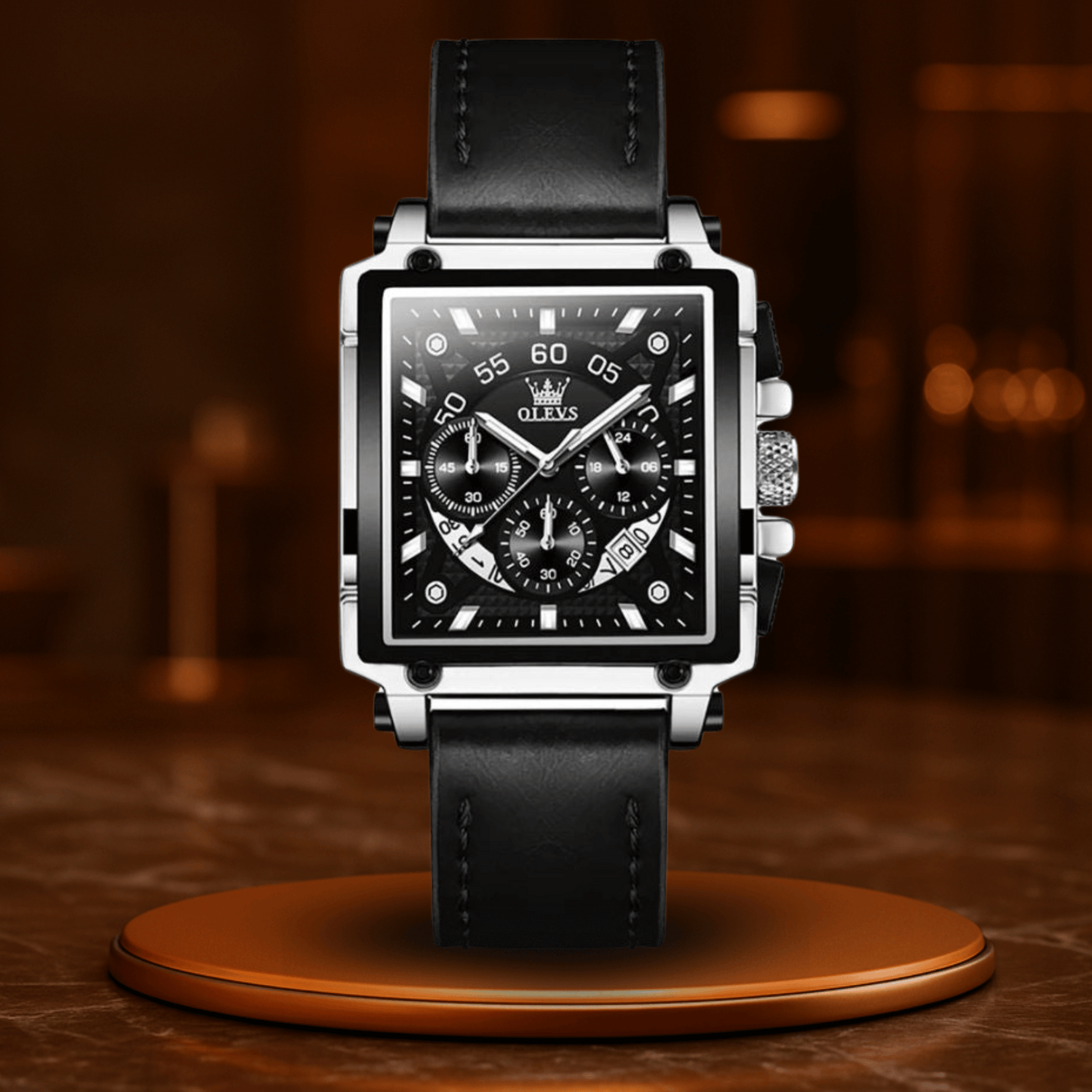 Le Le Forme – Édition Contemporaine de Maison Carré apporte un vent de fraîcheur dans le monde des montres chronographes. Avec son cadran carré frappant, symbole de structure, de caractère et de pensée moderne, il se distingue délibérément de l'attendu. Associé à un bracelet en cuir élégant et à un mouvement à quartz haute précision, c'est l'accessoire parfait pour les hommes qui ne se contentent pas de suivre le temps – mais qui le définissent.