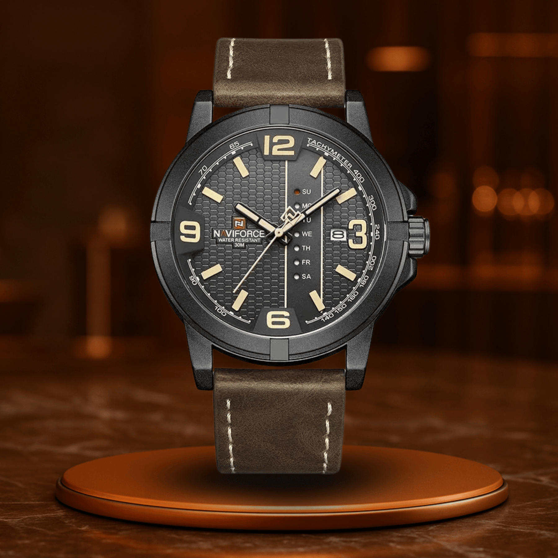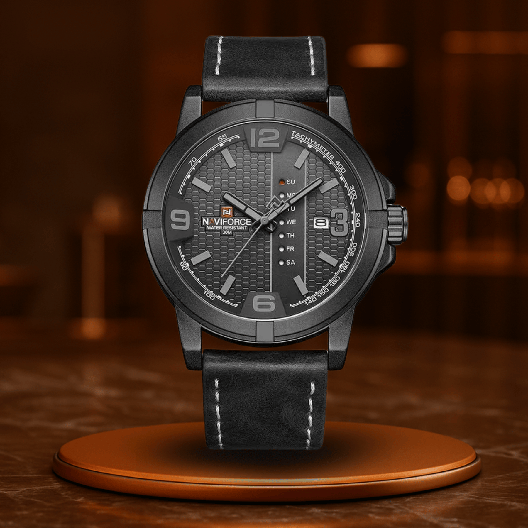 Avec affichage de la date et de la semaine, aiguilles lumineuses et construction résistante à l'eau, c'est un chef-d'œuvre de subtilité – conçu pour les hommes qui n'ont pas besoin de se justifier.